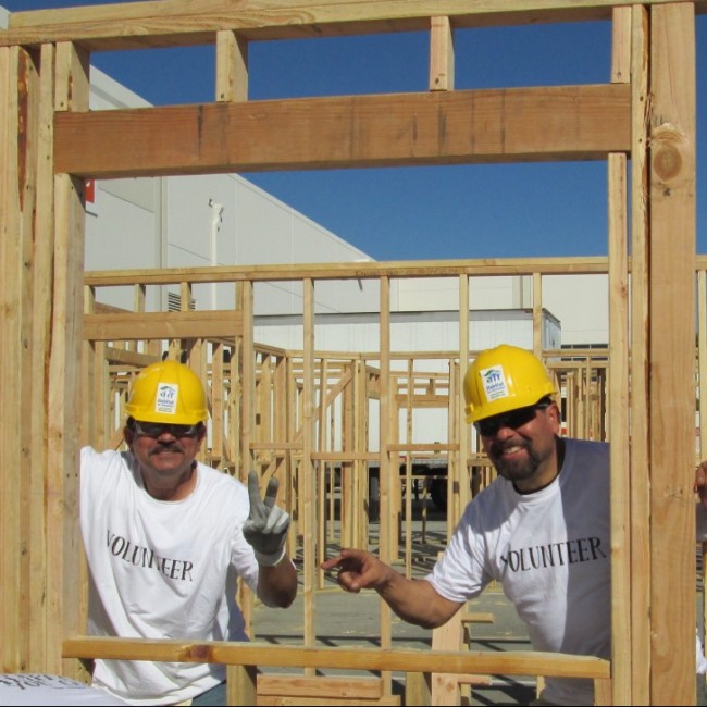Simpson Strong-Tie contacted us about doing a wall raising for the Jurupa Valley veteran build in November and, given that we are still in the planning stage of this project, got a little creative with executing their volunteering; they framed and raised the walls of two homes in the parking lot of their facility.